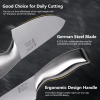 2.Made of premium German steel, after vacuum heat-treatment and nitrogen cryogenic tempering, manual polishing to keep the sharp edge, makes our kitchen knives with 53±2 Rockwell Hardness (HRC), the sharp knife blade matched can let your cutting effortlessly and get the job done with ease. 0.25~0.35% carbon content that makes the blade not easy to rust.