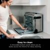 The ultimate meal-making machine: Air Fry, Air Roast, Air Broil, Bake, Bal, and Toast all in one powerful 1800-watt appliance. Reclaim your counter space as this oven takes up 50% less space when you flip it up and away to store against your backsplash. Air fry up to 75% less fat than traditional frying methods. Tested against hand-cut, deep-fried French fries. XL capacity with 45% larr usable pan cooking area vs. the flat surface area of the TOA-60 and TOA-65 pan. Fits a 13" pizza, up to 9 slices of toast or 6 chicken breasts (6–8 oz. each). Easy clean up with included removable crumb tray and an easily accessible back panel for deep cleaning. Cooks up to 60% faster than a traditional oven with Air Roast; 60 second preheat; full meals in as little as 20 minutes. Even baking: Up to 40% more-even baking than the Air Fry Oven TOA-60. Digital Crisp Control Technology: Precision-controlled temperature, heat source, and airflow for ultimate versatility and optimum cooking performance. Toast and bals done the way you like: Use the toast darkness selector to t it just right.
