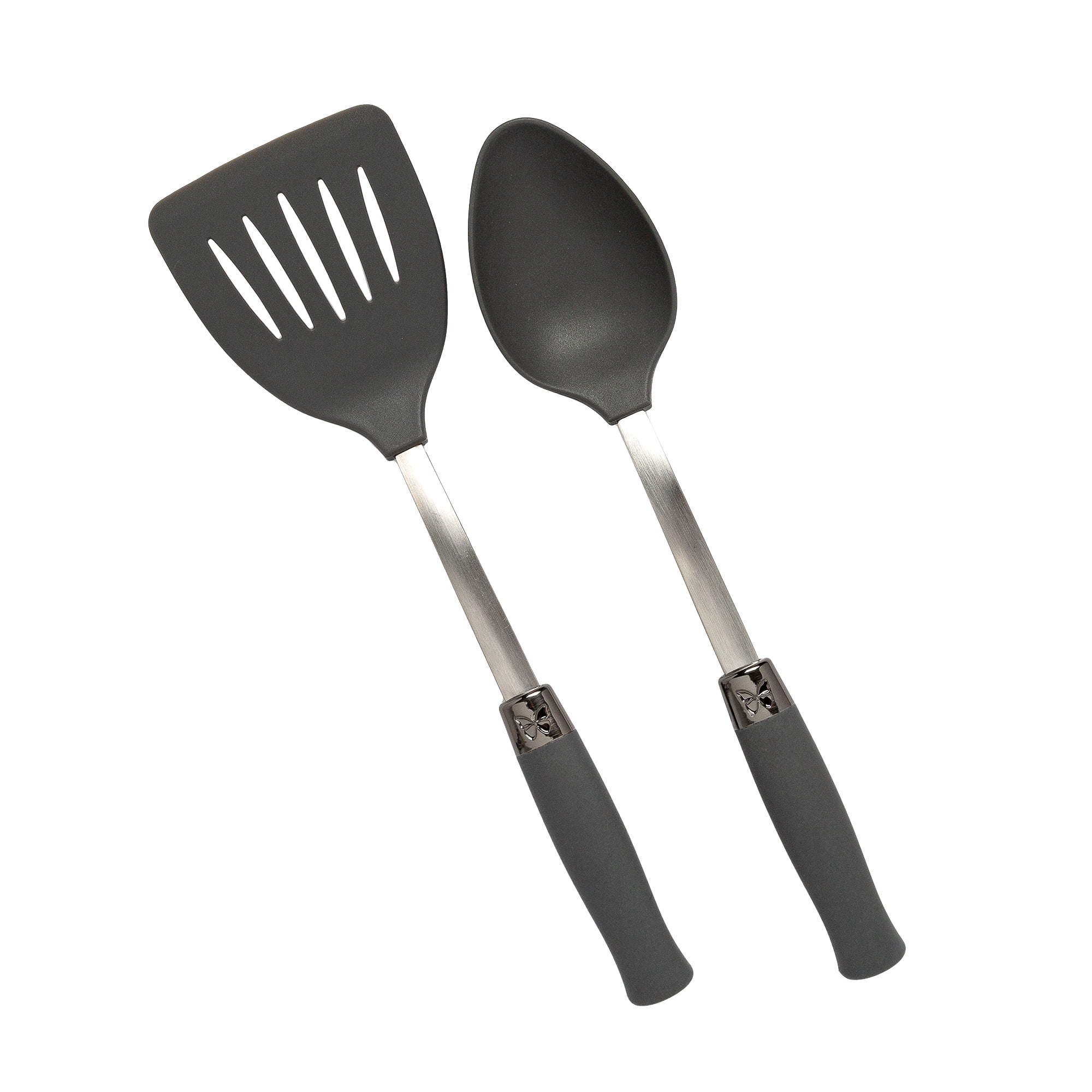 Everything you need to make a delicious homecooked meal is right here in Prairie Signature 14-Piece Cast Aluminum Cookware Set. This cookware set will have any kitchen instantly dressed for culinary success with its full range of everyday cooking essentials. Each pot and pan is made from durable cast aluminum that heats quickly and evenly and features a long-lasting nonstick interior for easy food release and cleaning. Plus, their speckled enamel exteriors will not change color or fade when heated, delivering long-lasting beauty to your cookware collection. Just use the included felt protectors that go between each piece to help keep them safe from scuffs and scratches while in storage. Be sure to use the utensils and their rest while you're cooking too! The rest's prongs and slotted design will not only hold each of the included utensils in place, but it will also catch drippings as they sit, allowing you to enjoy a clean and organized cooking session time and time again. Add a little country to your home cooking with Prairie Signature 14-Piece Cast Aluminum Cookware Set.