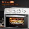 MULTI-FUNCTION Toaster Oven - This air fryer toaster oven includes 7 versatile presets: Air Fry, Toast/Bake, Roast, Broil, Defrost, Convection Broil, and Grill. All-in-One Air Fryer Oven.And you will get: lovely E- Recipes and accessories(Air fryer basket, oven rack, baking pan, and drip tray).